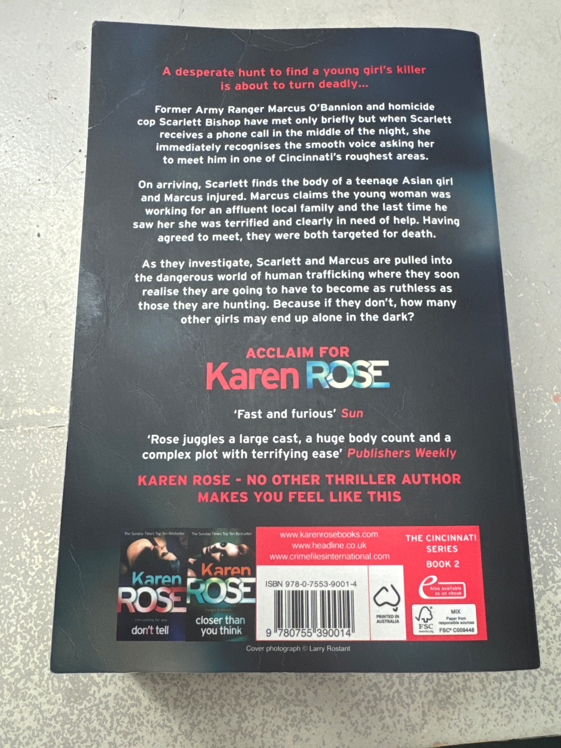 Former Army Ranger Marcus O’Bannion is a fierce champion of victims’ rights. His secret past gives him good reason. He believes he’s seen the depths of human depravity, but then his investigation into the murder of a young girl who once asked for his help lures him and Scarlett down a dark, dark road—and straight into the crosshairs of a dangerous, powerful underground ring that deals in human trafficking. To stop them, Scarlett and Marcus have to be just as cunning and just as ruthless. But first they have to make it out alive.