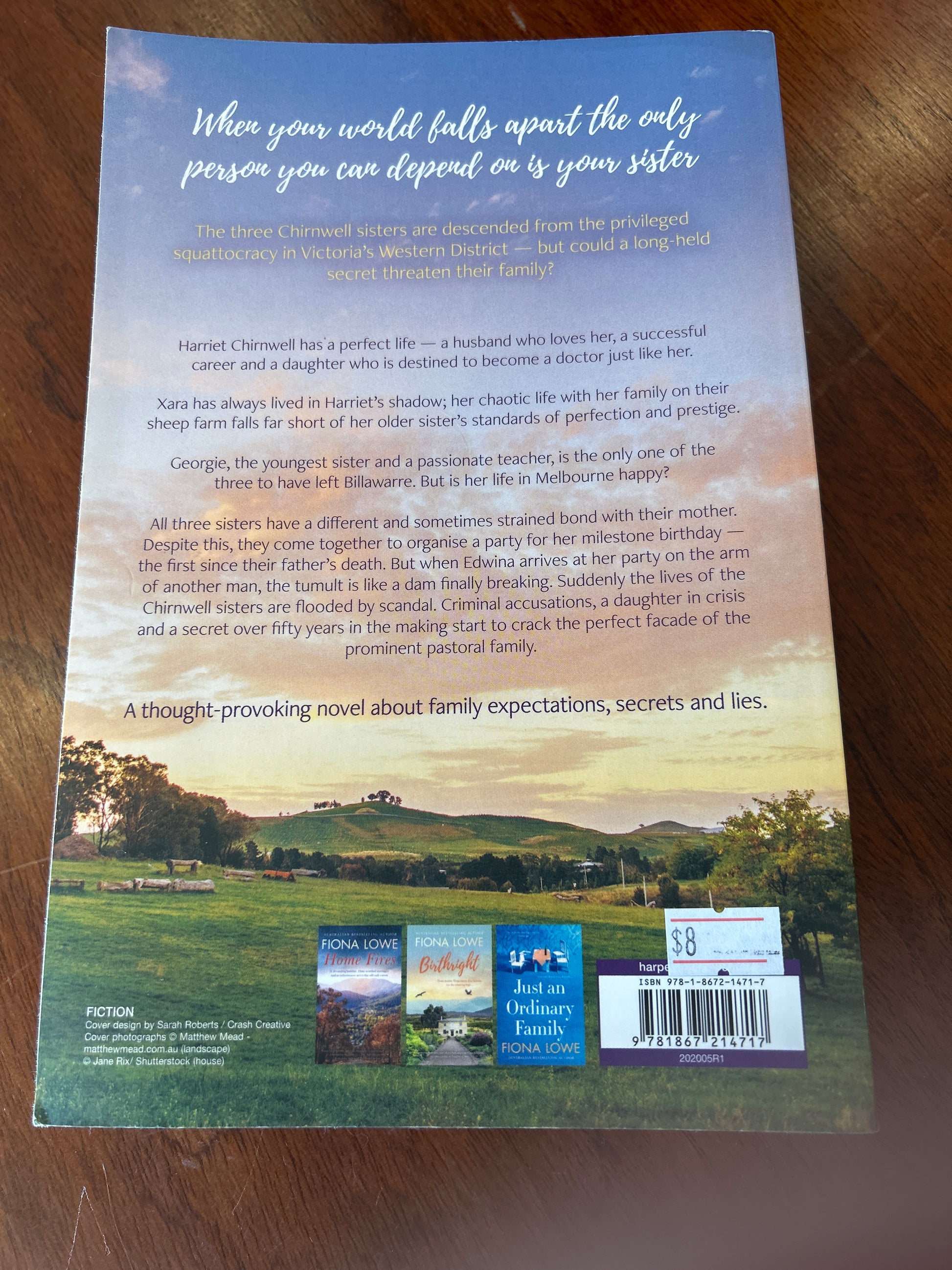 All three sisters have a different and sometimes strained bond with their mother. Despite this, they come together to organise a party for her milestone birthday - the first since their father’s death. But when Edwina arrives at her party on the arm of another man, the tumult is like a dam finally breaking. Suddenly the lives of the Chirnwell sisters are flooded by scandal. Criminal accusations, a daughter in crisis and a secret over fifty years in the making start to crack the perfect facade of the prominent pastoral family.