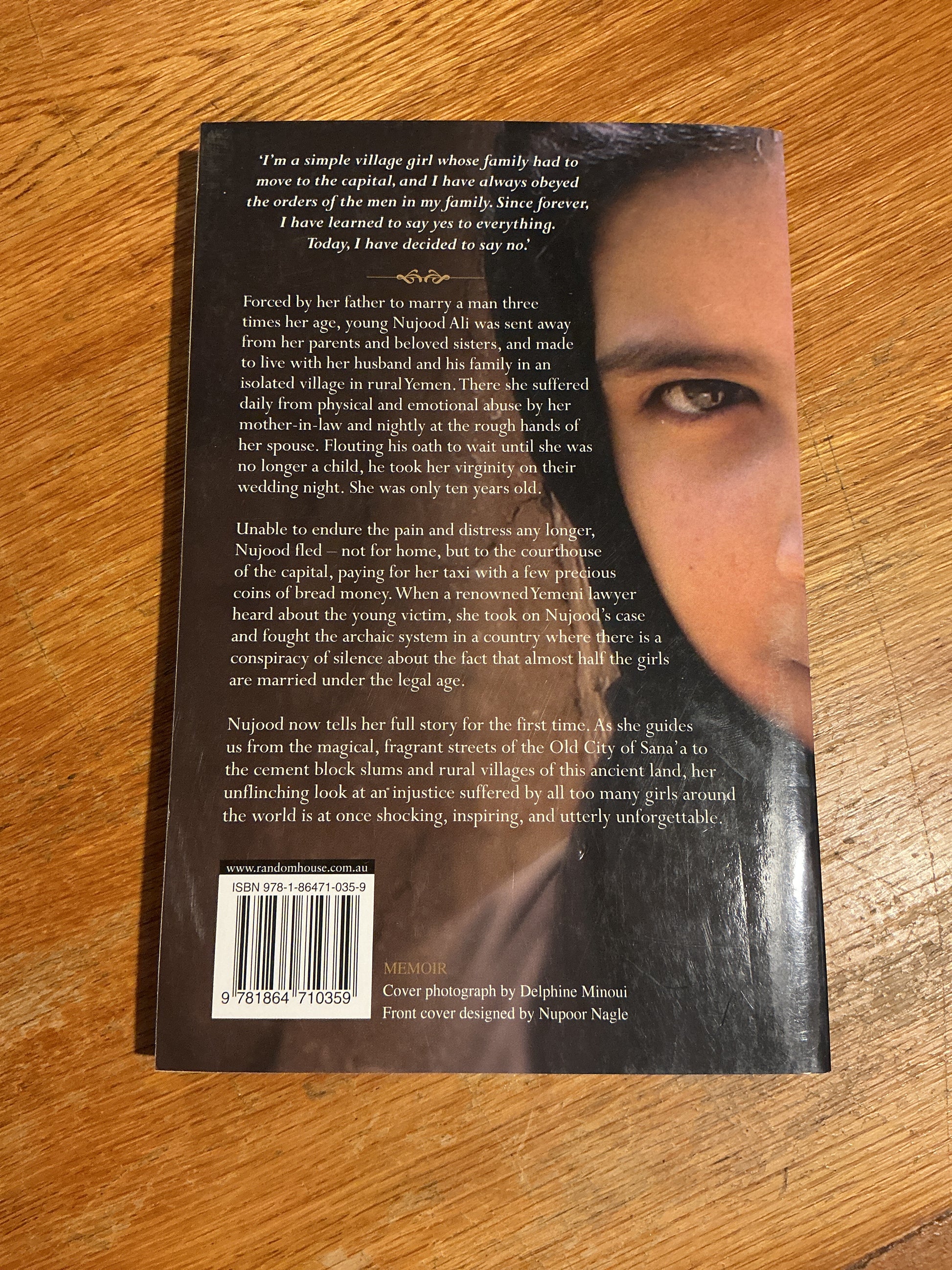 Forced by her father to marry a man three times her age, young Nujood Ali was sent away from her parents and beloved sisters, and made to live with her husband and his family in an isolated village in rural Yemen. There she suffered daily from physical and emotional abuse by her mother-in-law and nightly at the rough hands of her spouse. Flouting his oath to wait until she was no longer a child, he took her virginity on their wedding night. She was only ten years old.