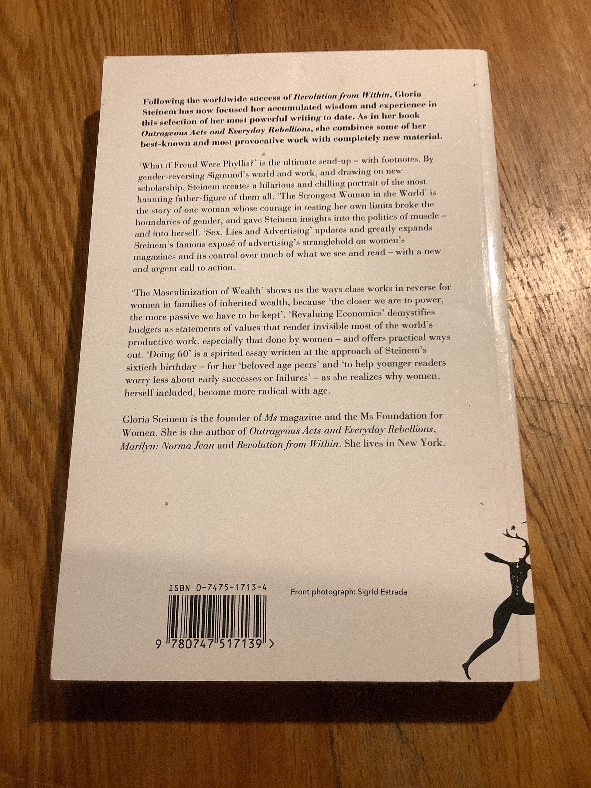 A collection of Steinem’s writing which includes pieces such as ‘What if Freud were Phyllis?, a portrait of the most haunting father-figure of them all. ‘The Strongest Woman in the World’ is the story of one woman whose courage in testing her own limits broke the boundaries of gender, and gave Steinem insights into the politics of muscle - and into herself. ‘Sex, Lies and Advertising’ updates and greatly expands Steinem’s famous expose of advertising’s stranglehold on women’s magazines and its control over much of what we see and read.