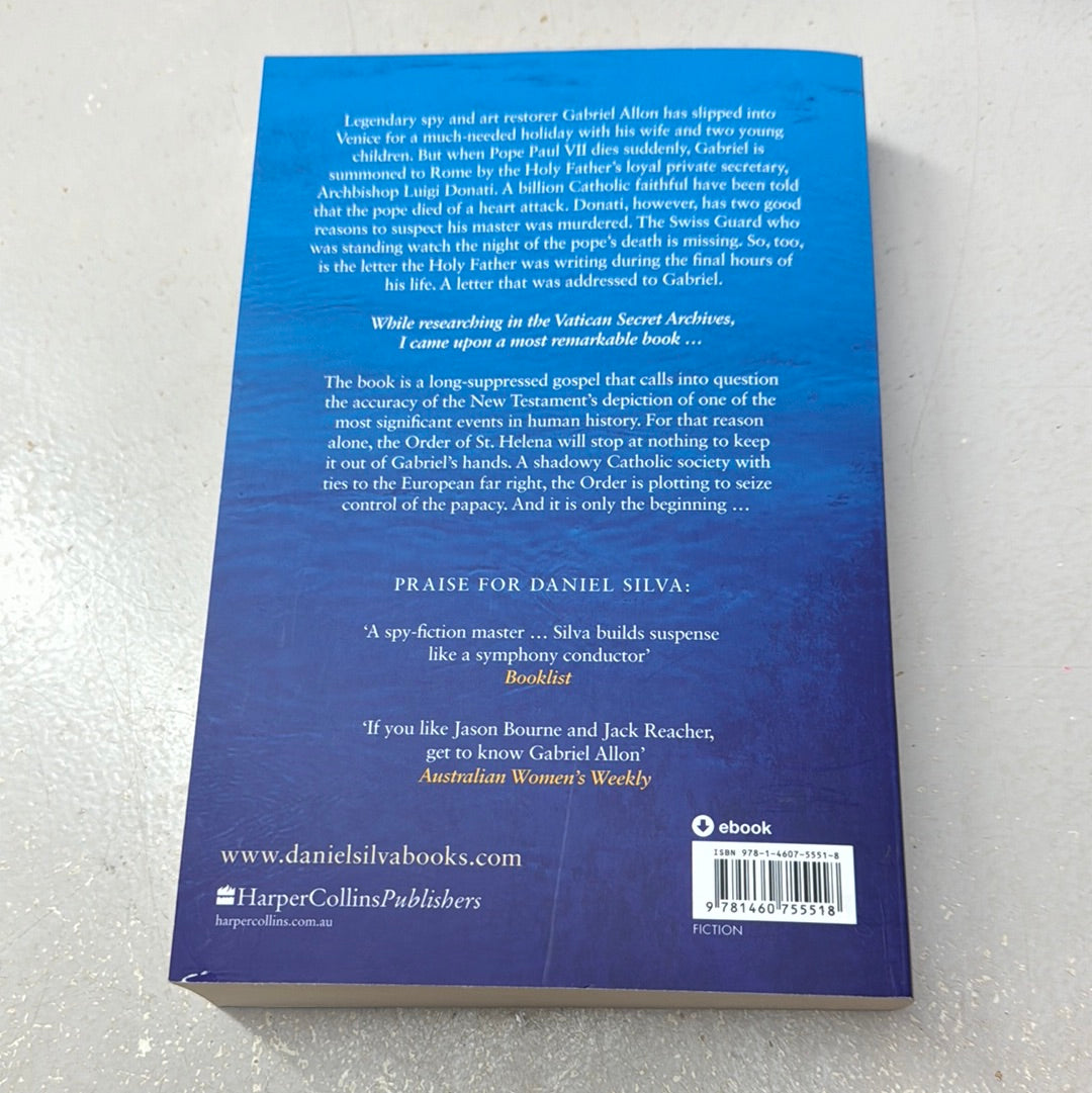 Legendary spy and art restorer Gabriel Allon has slipped into Venice for a much-needed holiday with his wife and two young children. But when Pope Paul VII dies suddenly, Gabriel is summoned to Rome by the Holy Father’s loyal private secretary Archbishop Luigi Donati. A billion Catholic faithful have been told that the pope died of a heart attack. Donati, however, has two good reasons to suspect his master was murdered. The Swiss Guard who was standing watch the night of the pope’s death is missing.So, too, is the letter the Holy Father was writing during the final hours of his life. A letter that was addressed to Gabriel.