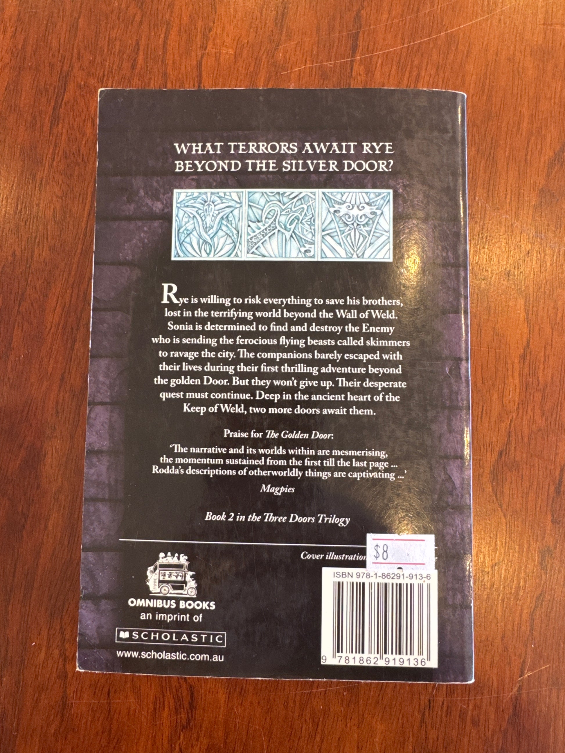 Rye is willing to risk everything to save his brothers, lost in the terrifying world beyond the Wall of Weld. Sonia is determined to find and destroy the Enemy who is sending the ferocious flying beasts called skimmers to ravage the city. The companions barely escaped with their lives during their first thrilling adventure beyond the golden Door. But they won’t give up. Their desperate quest must continue. Deep in the ancient heart of the Keep of the Weld, two more doors await them.