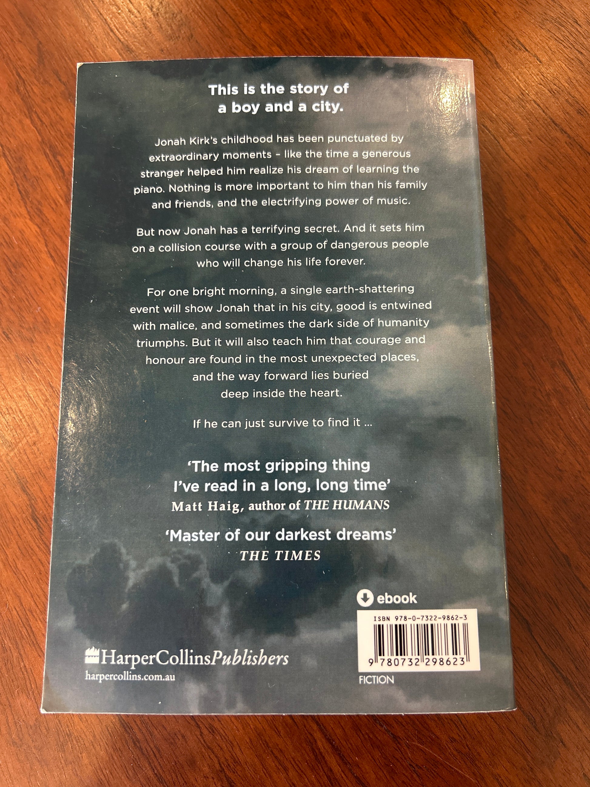 For one bright morning, a single earth-shattering event will show Jonah that in his city, good is entwined with malice, and sometimes the dark side of humanity triumphs. But it will also teach him that courage and honour are found in the most unexpected places, and the way forward lies buried deep inside the heart.