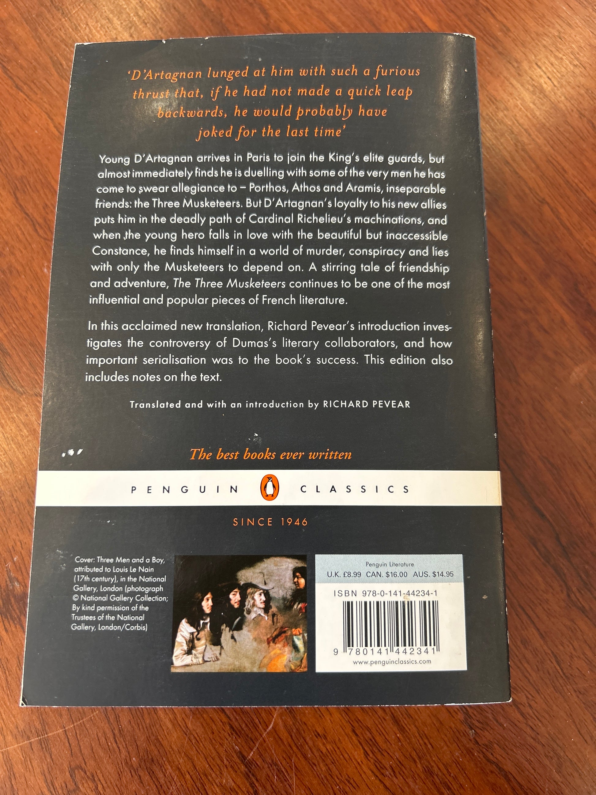 The Three Musketeers tells the story of the early adventures of the young Gascon gentleman, D'Artagnan and his three friends from the regiment of the King's Musketeers - Athos, Porthos and Aramis. Under the watchful eye of their patron M. de Treville, the four defend the honour of the regiment against the guards of Cardinal Richelieu, and the honour of the queen against the machinations of the Cardinal himself as the power struggles of seventeenth century France are vividly played out in the background. But their most dangerous encounter is with the Cardinal's spy, Milady, one of literature's most memorable female villains.